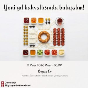 Demokrat Bilgisayar Mühendisleri’nin geleneksel yeni yıl kahvaltımızda bir araya geliyoruz. Bu Pazar Beytepe Beyaz Ev’de buluşalım.