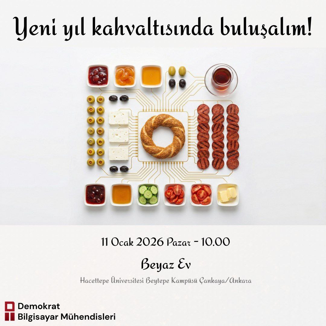 Demokrat Bilgisayar Mühendisleri’nin geleneksel yeni yıl kahvaltımızda bir araya geliyoruz. Bu Pazar Beytepe Beyaz Ev’de buluşalım.